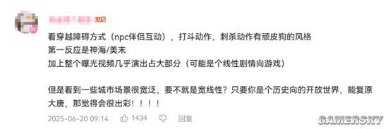 在这些舆论中,玩家们对游戏的质疑仍是主流。从早先的“村里又一个大学生”“手游3A”再到“特有的单机”这样的争议话题,《归唐》迅速成为各个论坛、平台上玩家们的热点词汇。而随着舆论的发展,预告片的播放量更是在短短两天就突破了千万大关,甚至游戏一时出现了“国外叫好,国内唱衰”这样的奇妙反差。