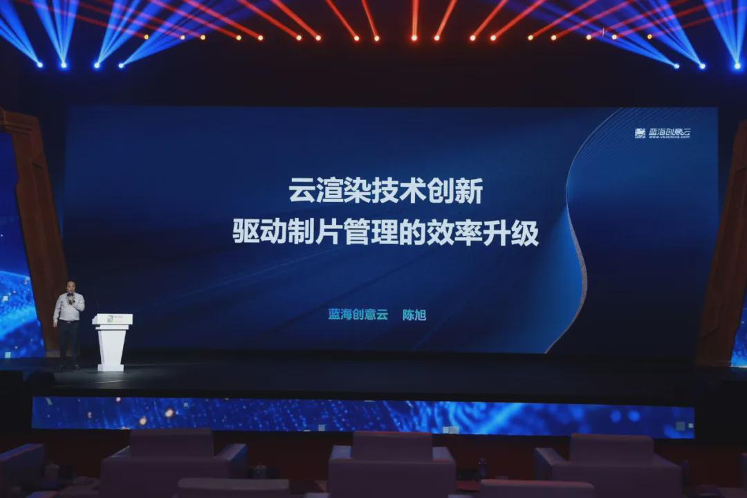 蓝海彤翔集团副总裁陈旭带来主题演讲《云渲染技术创新:驱动制片管理的效率升级》。近年来,影视行业对视觉效果的极致化追求,使渲染耗时不断延长并推动算力需求呈指数级增长。他以《哪吒之魔童闹海》《蛟龙行动》等春节档电影为例,通过使用云渲染技术大大缩短了制作周期。