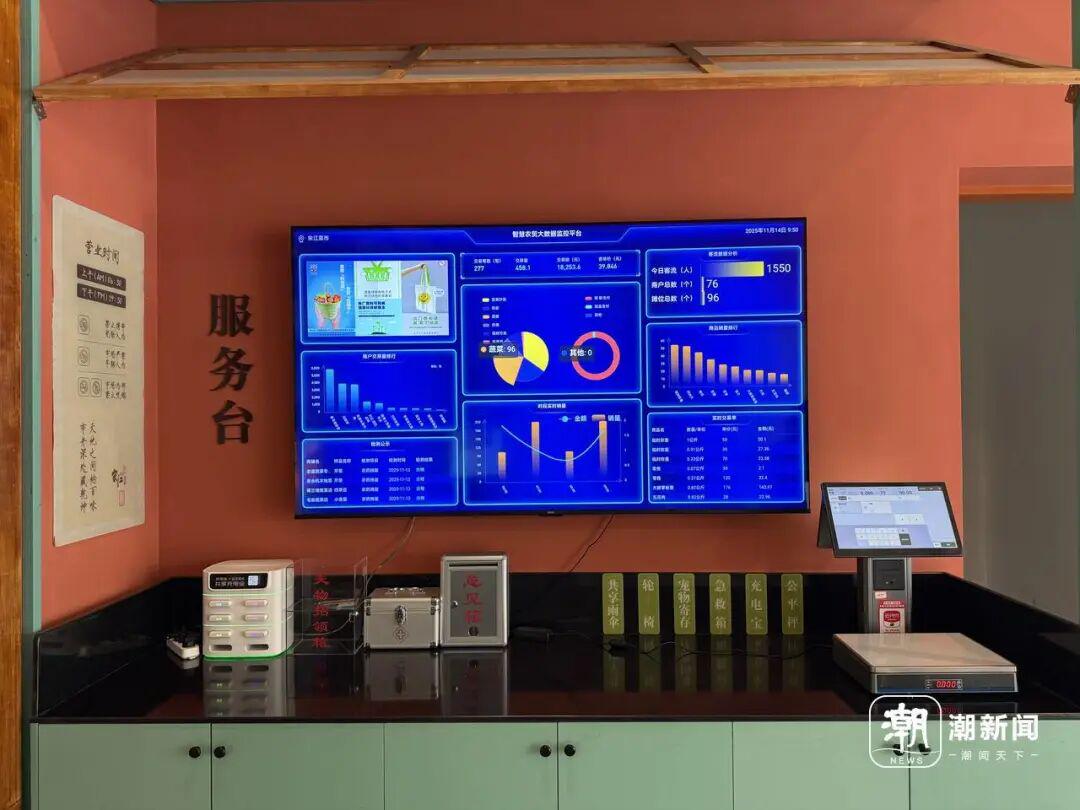 通过大屏,记者看到,实时客流、农药残留检测公示、商户交易排行、菜品价格等情况一目了然。“商户们进来的菜品每天我们都会有专门的工作人员进行检测,数据即时更新,老百姓买得明白,更吃得放心。”