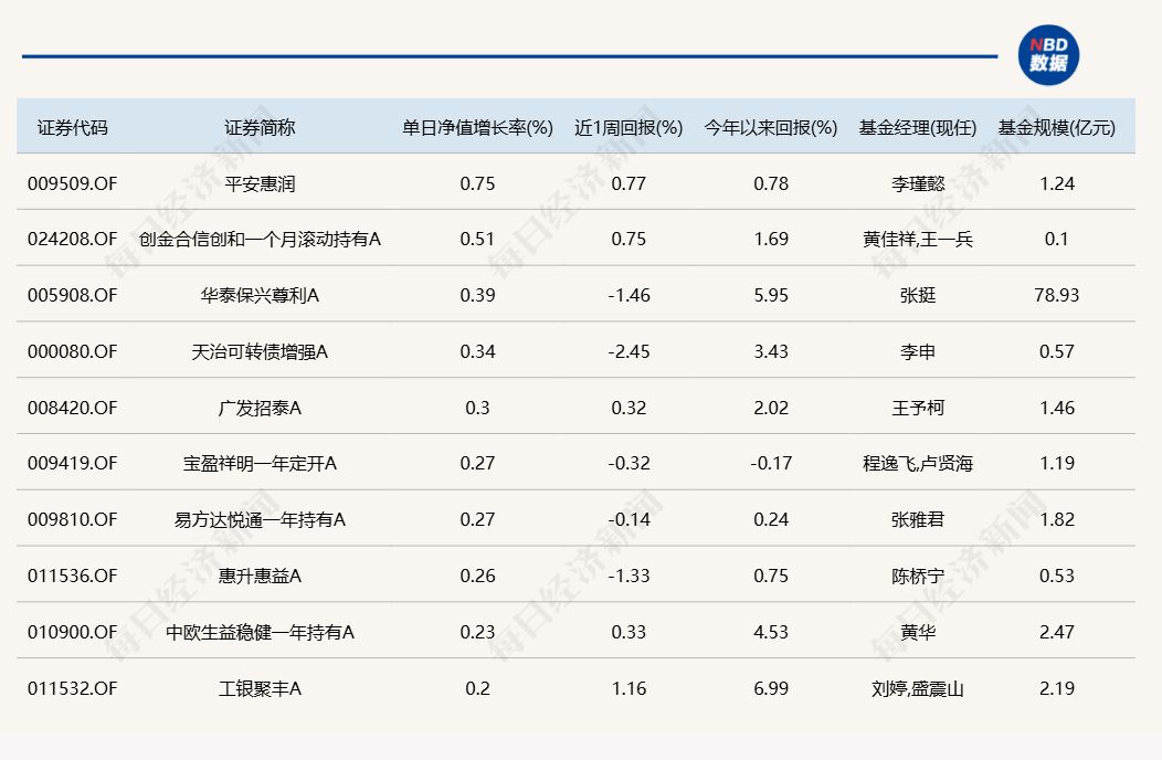 3.单日债基涨跌幅榜