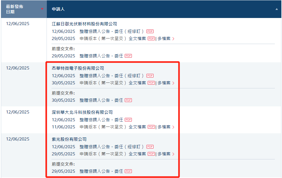 披露易官网显示,6月12日,杰华特微电子股份有限公司、深圳华大北斗科技股份有限公司、紫光股份有限公司等3家半导体领域公司,均递交了港股IPO招股书。